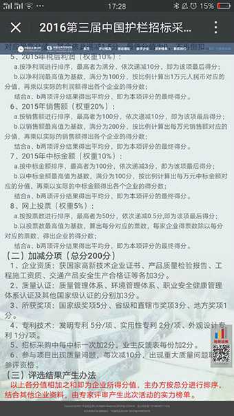 2016年第三屆中國護欄招標采購評價推介活動是一次zhuan業、嚴謹的護欄產品行業優xiu供應商評選活動,吸引了全guo百家有資質、有實力、有信譽的護欄供應商商家參與其中,此次評選不僅僅只是考量參評商家的在線支持率,更是要從公司經營年限、往年生產運營狀況、質量認證和zhuan利技術多方面進行考評,可以說,敢于參與此次評選的商家,必然對自己的實力和產品有著百分之bai的信心。